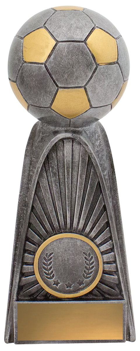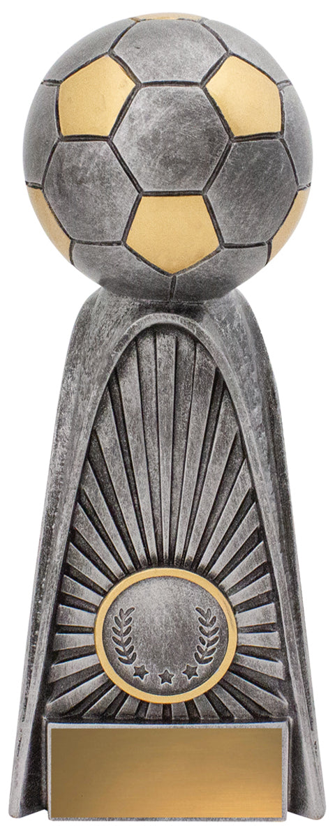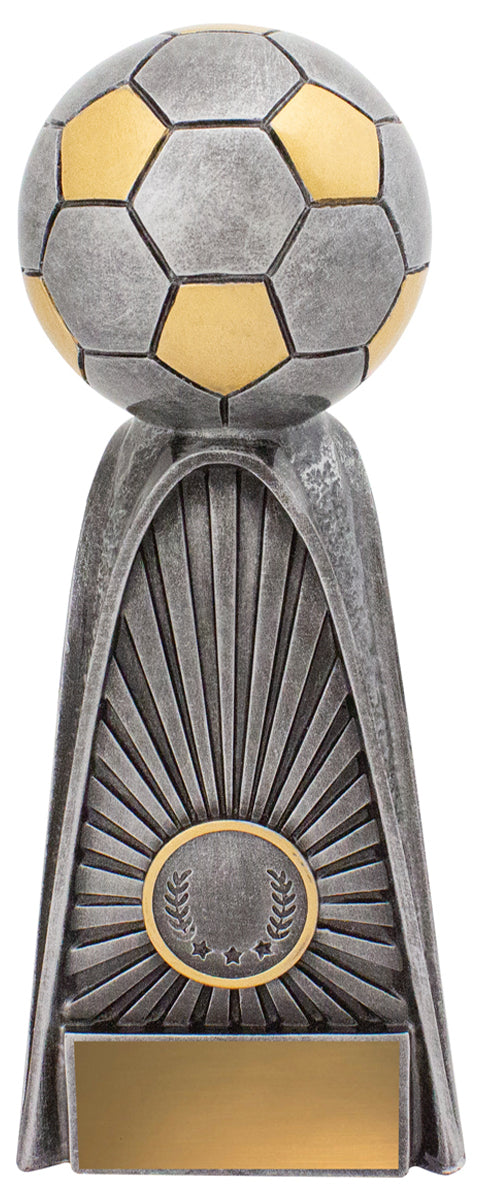 Bold tower style trophies that feature distinctive design elements - Fortress series is finished in classic antique silver and gold colours.