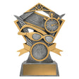 The Valour series of trophies presents a strong design of trophy highlighting the main elements for your sport. Finished in antique silver and gold with space for your custom logo.