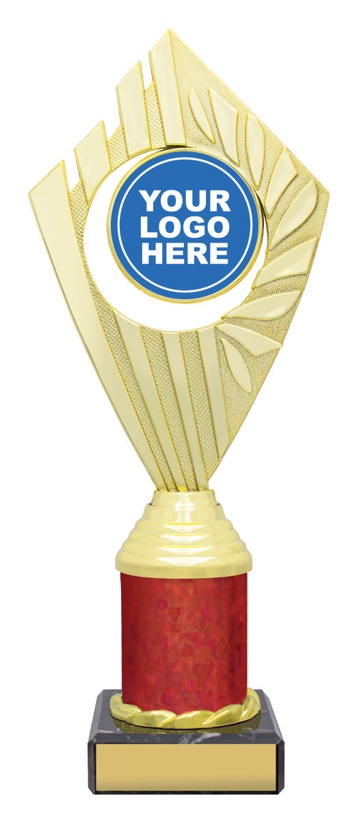 Flyer Series of trophies feature beautifully designed holders on columns of different colours - option to showcase 25 or 50mm logo or insert.