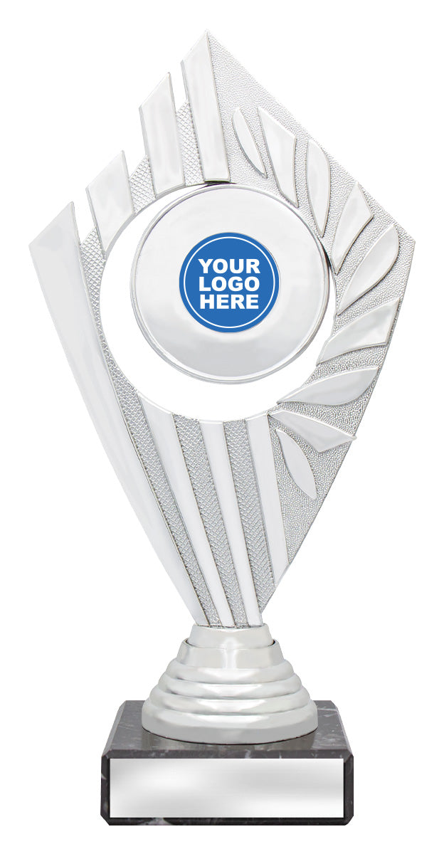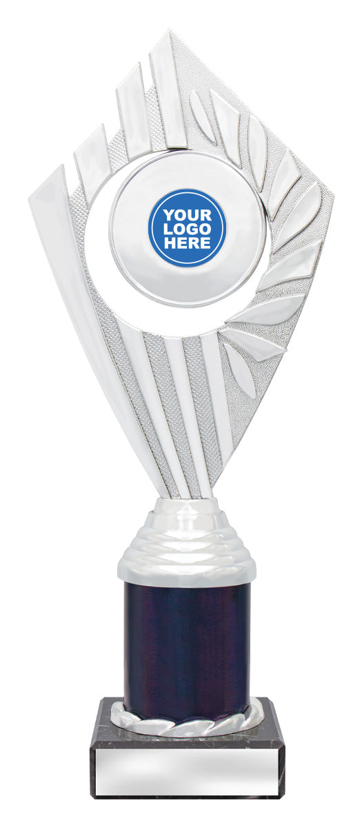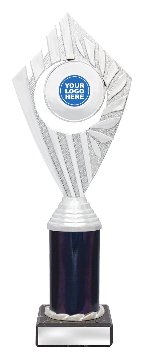 Flyer Series of trophies feature beautifully designed holders on columns of different colours - option to showcase 25 or 50mm logo or insert.