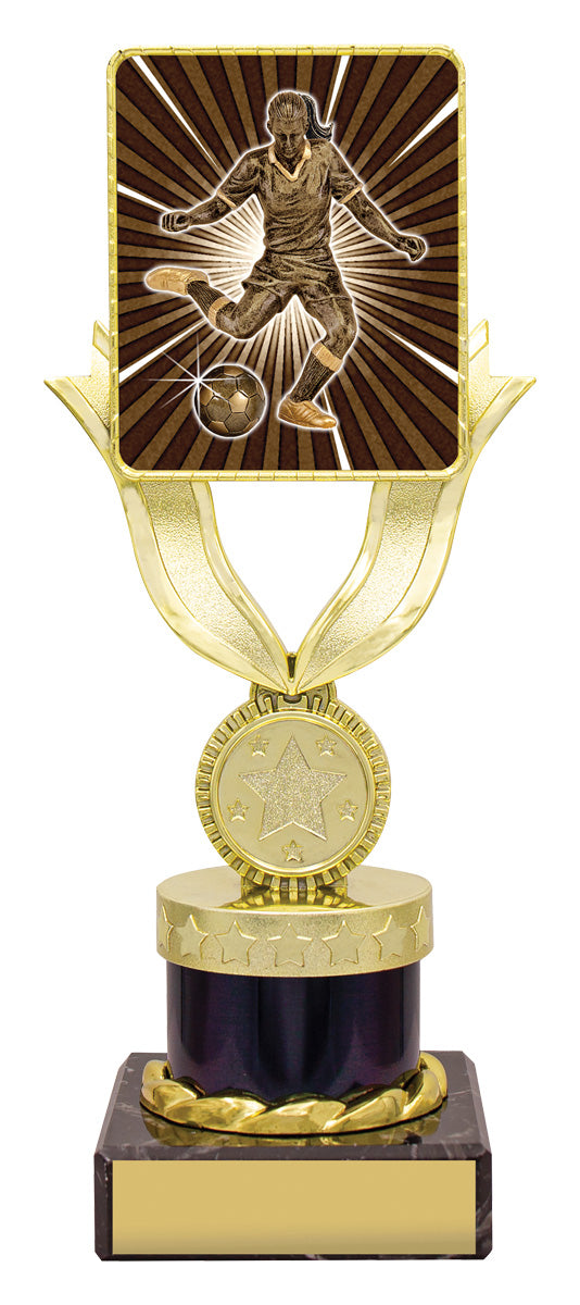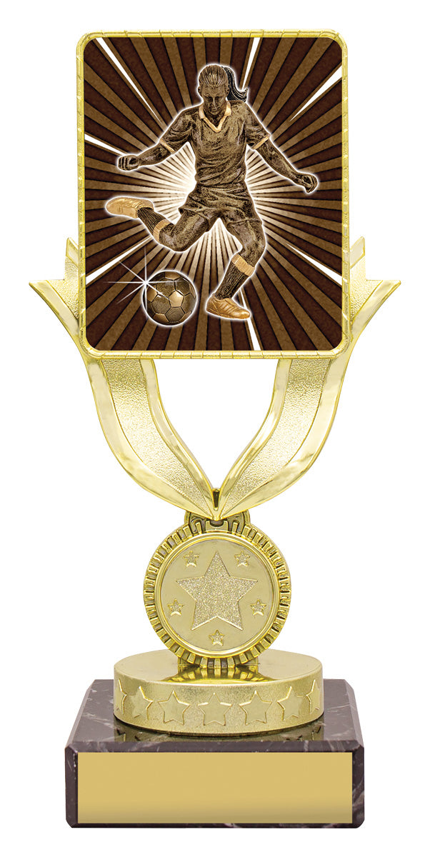 Brilliant football trophies in the Lynx Bold range features gold trophy holder showcasing the insert for your sport or activity. Range of sizes available.