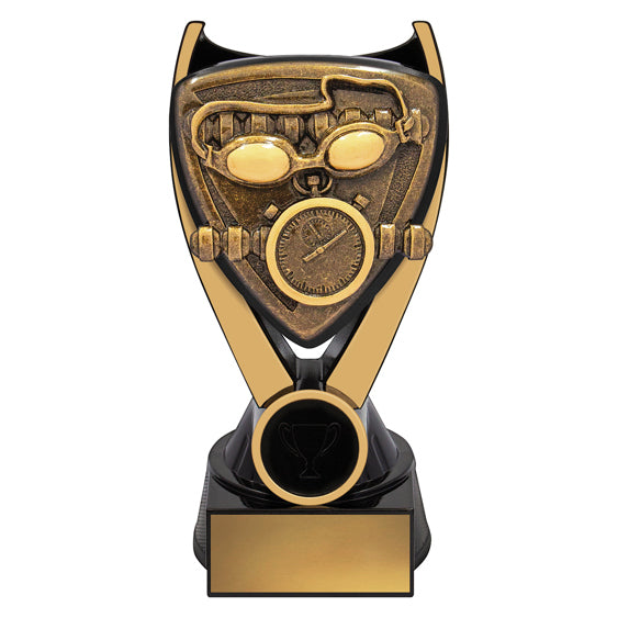 Nova series of trophies present a unique black & gold colour combination with a bold 3D type design to really celebrate the sport or activity of your awards.