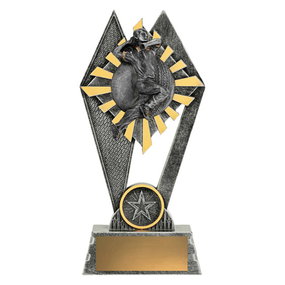 The Peak Series - for Cricket - is an innovative trophy series offering super value for such an impressive size range. An elevated design that showcases a male bowler theme against a vibrant sunray style background.