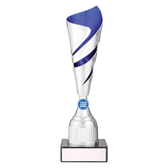 Cyclone Cups offer a fantastic range of trophy cups with innovative style and central space for your custom logo. Different vibrant colour combinations available.