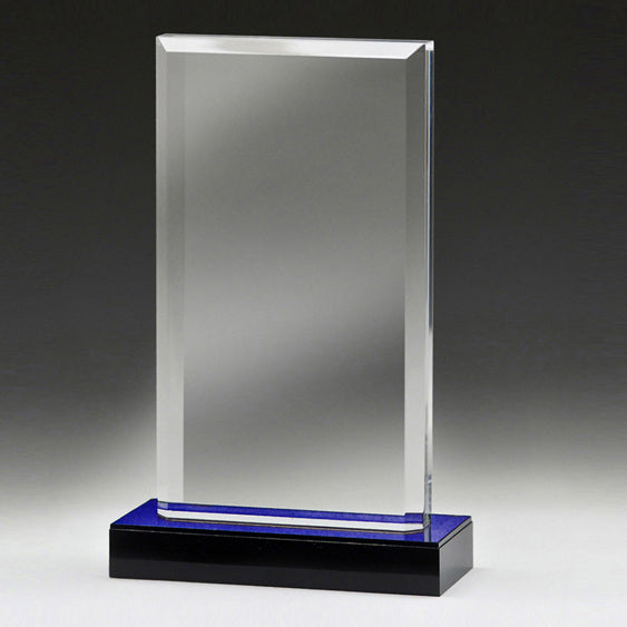 Affordable glass awards with blue mirror highlights - pair with trim to show off your design.