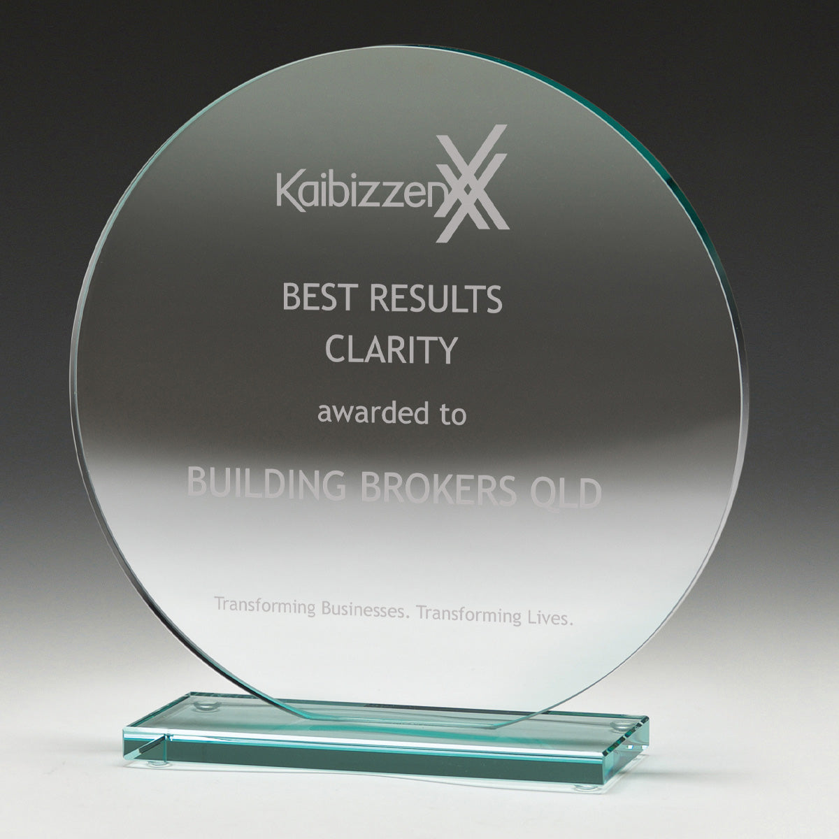 Jade Glass Circle Award series is a popular and affordable award option. Series in 3 sizes, circle is a universal shape that will be effective at your corporate or business event.