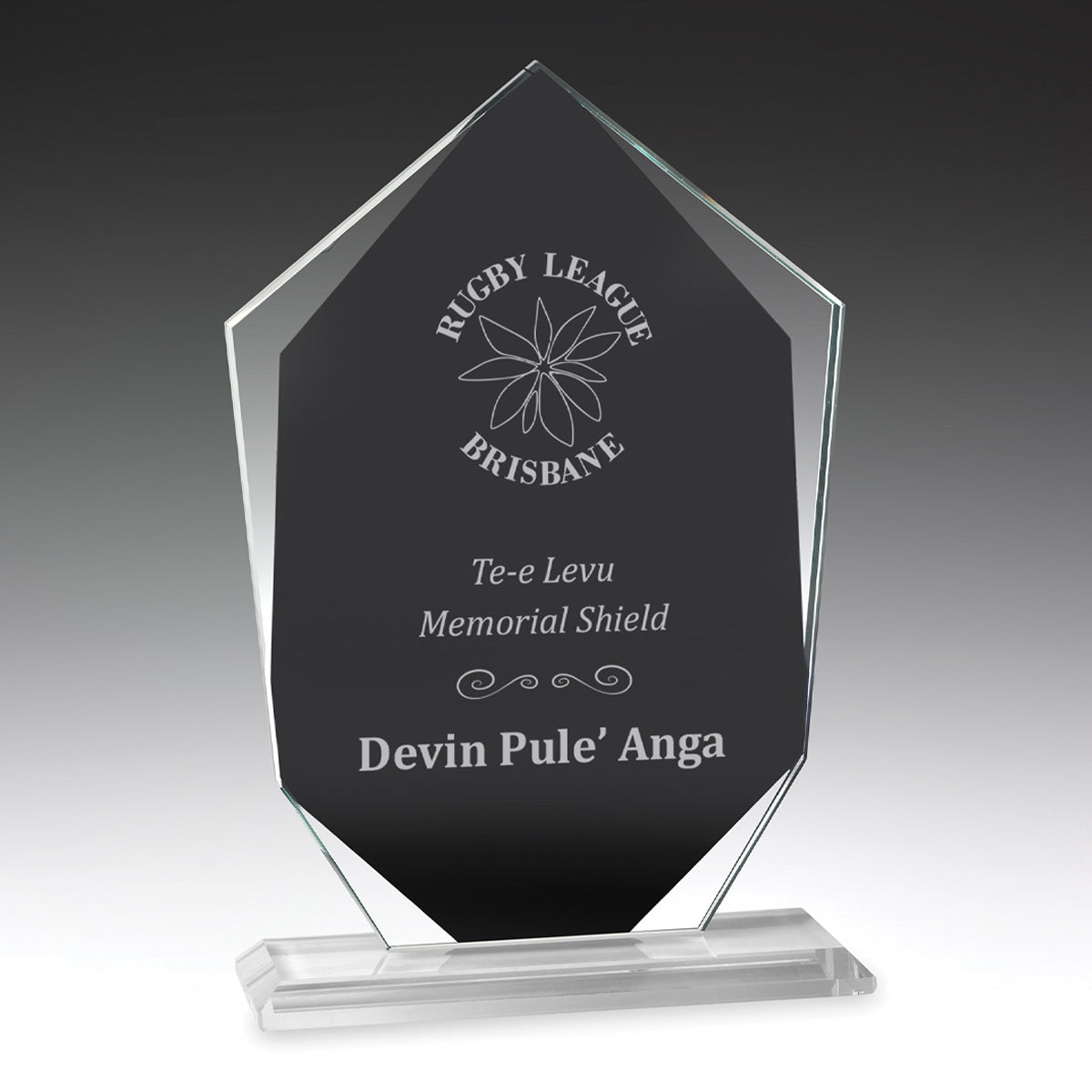 Glass series the Scorpo features distinct arrow-like shape and black panelling that allows for brilliant engraving to your requirements.