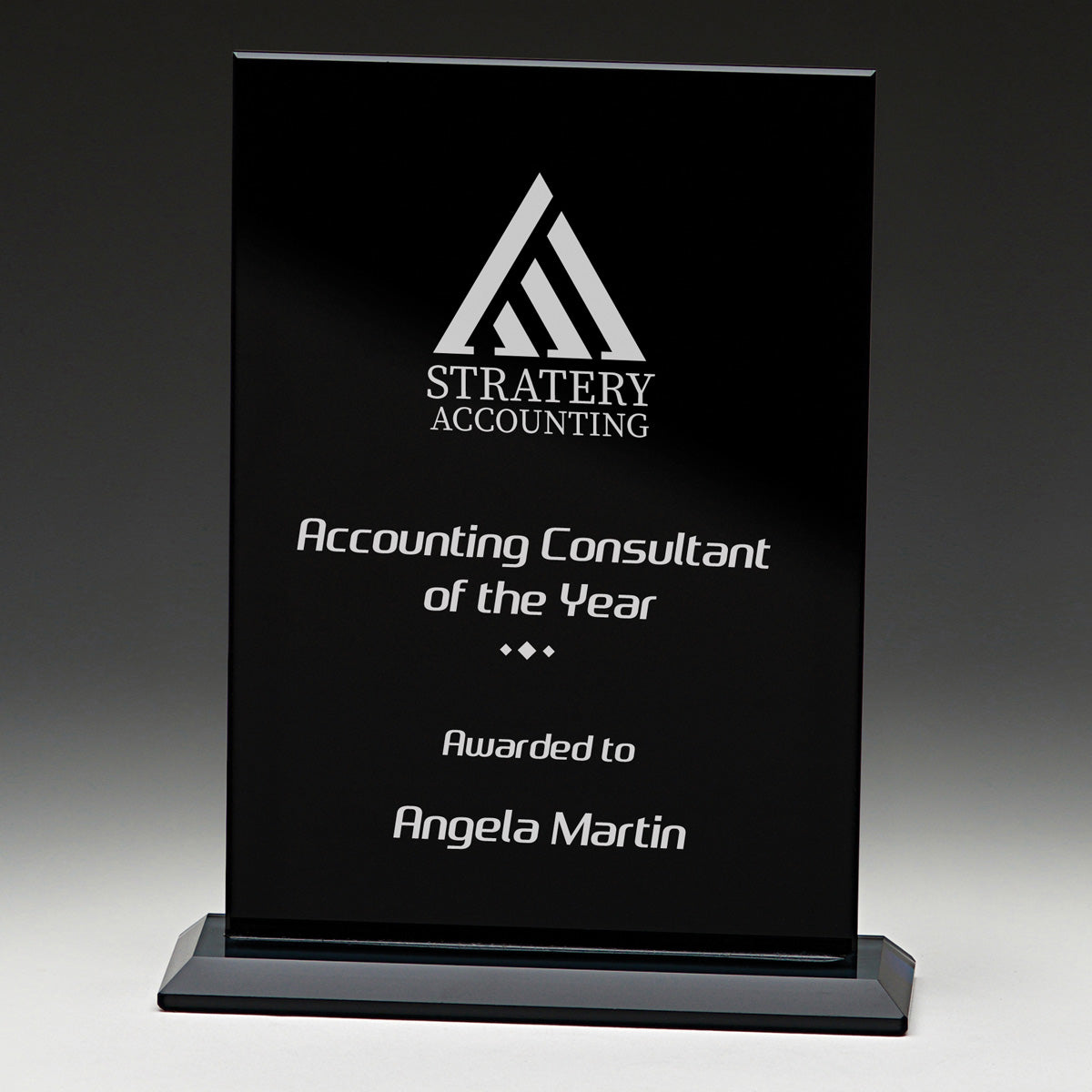 Simple yet highly effective glass awards, the Calibre budget glass series offers substantial scope for personalisation and the black panelling effect will showcase your engraving brilliantly.