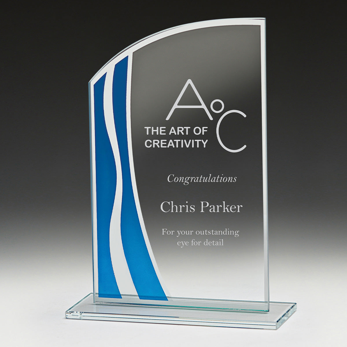 Affordable series of glass awards, Neo allows you to provide a budget yet elegant trophy, with stylish blue accented design features, to your award recipients.