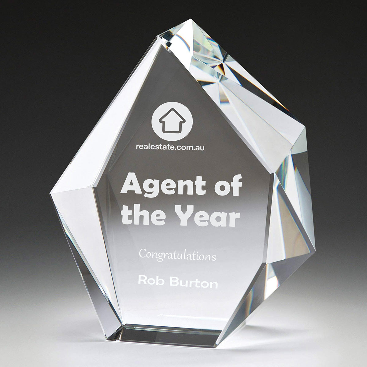 The 'Glacier Optical' crystal is a trusted, prestige award for premium requirements. The series presents 2 super impressive sizes of awards - the crystal is 60mm thick. Awards elevated by clear cut facet-like edges. Supplied in gift box.