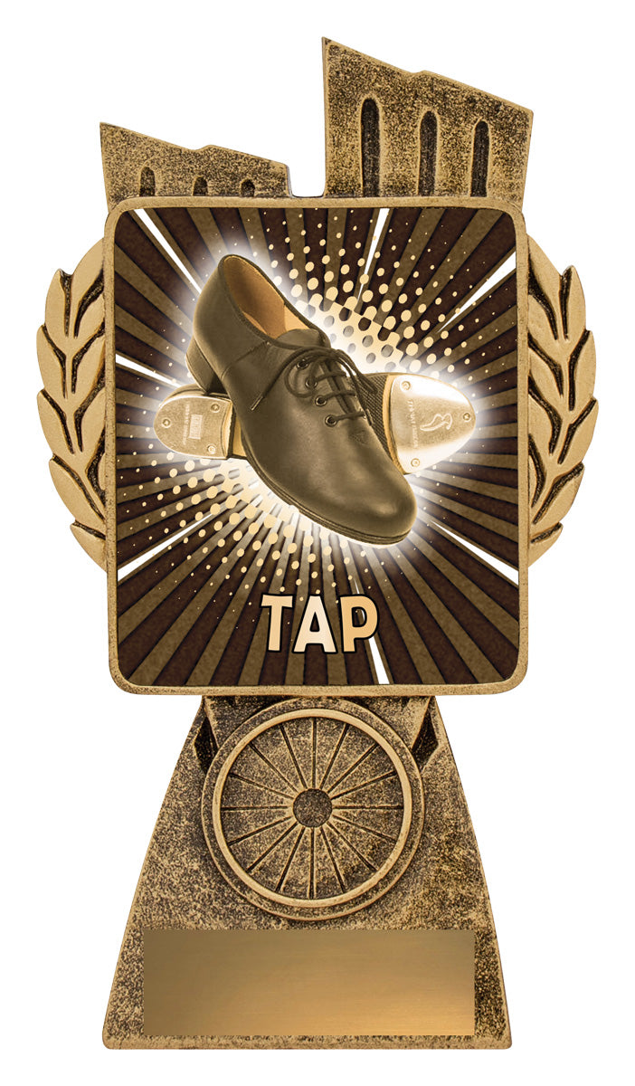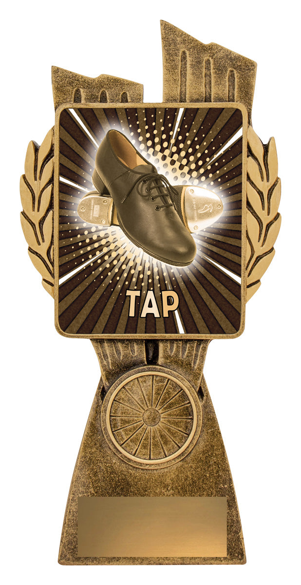 This Antique Gold Lynx Trophy is an effective trophy alternative for your dancers. Featuring a classic wreath and vibrant design, these Tap dancing trophies are customisable and available in 4 impressive sizes. Matching Lynx medal completes the range of awards.