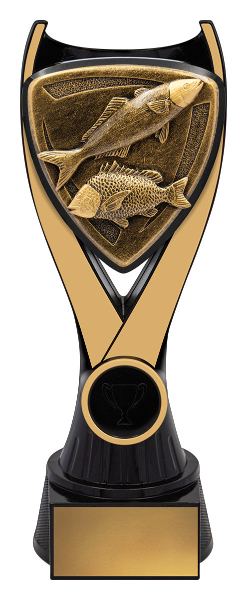 Nova series of trophies present a unique black & gold colour combination with a bold 3D type design to really celebrate the sport or activity of your awards.