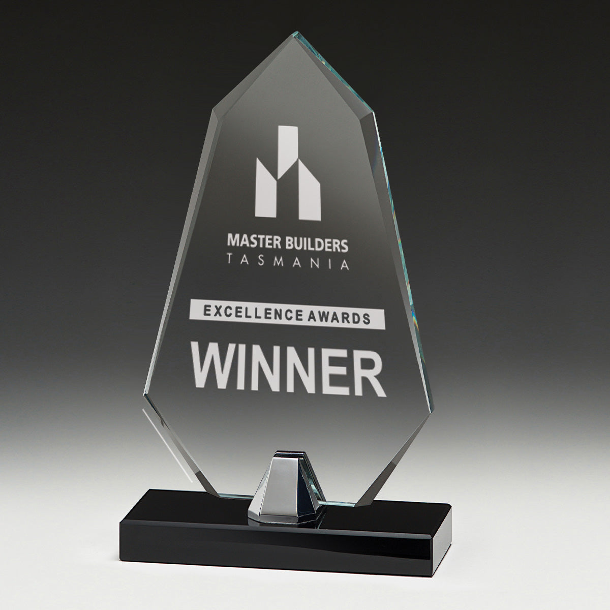 The Hoplite award features an arrow inspired design to invoke peak performance. As a glass award, the design retains excellent value while offering a bold alternative.