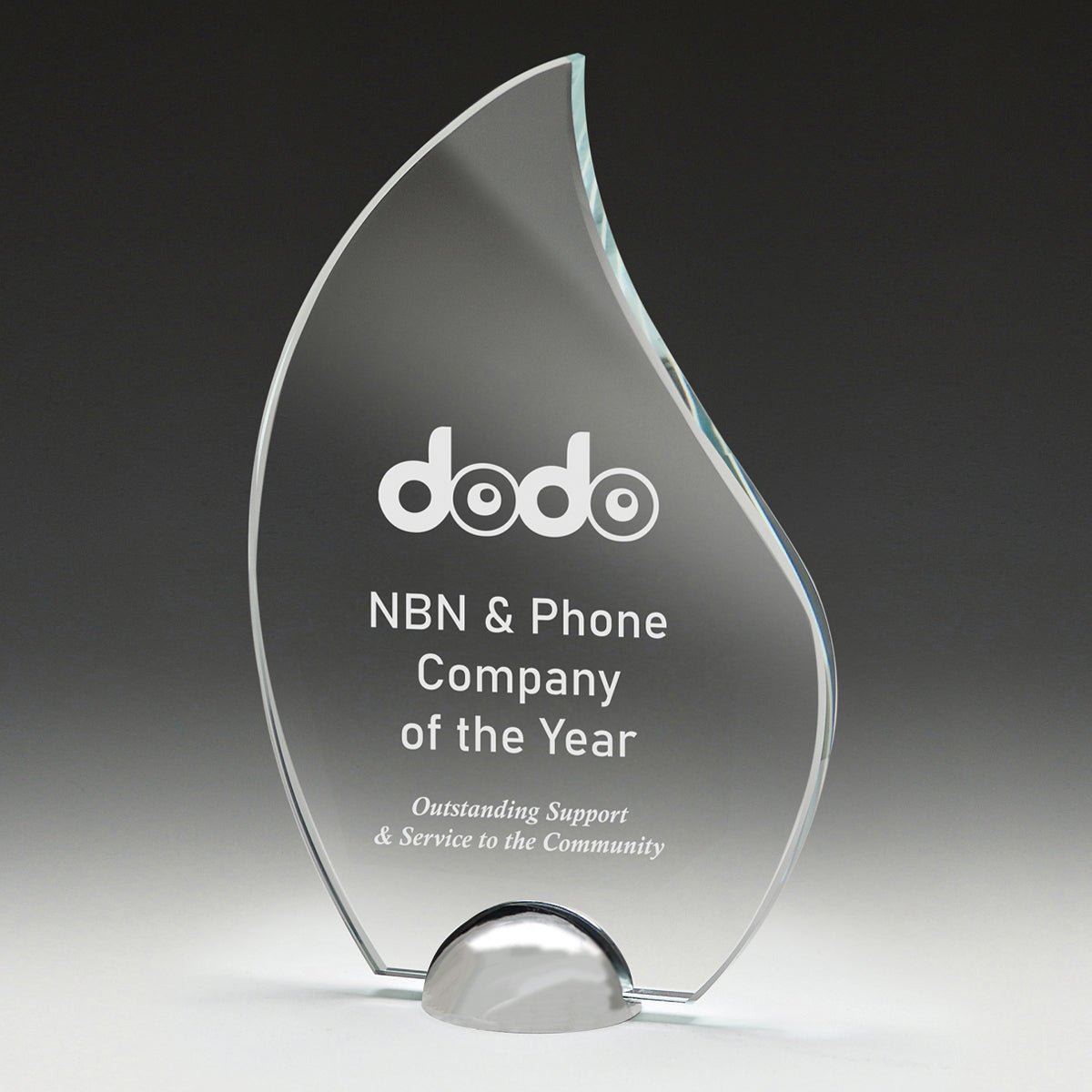 Affordable and stylish glass awards feature a bold design that may be well suited to your event or presentation. Supplied in gift box.