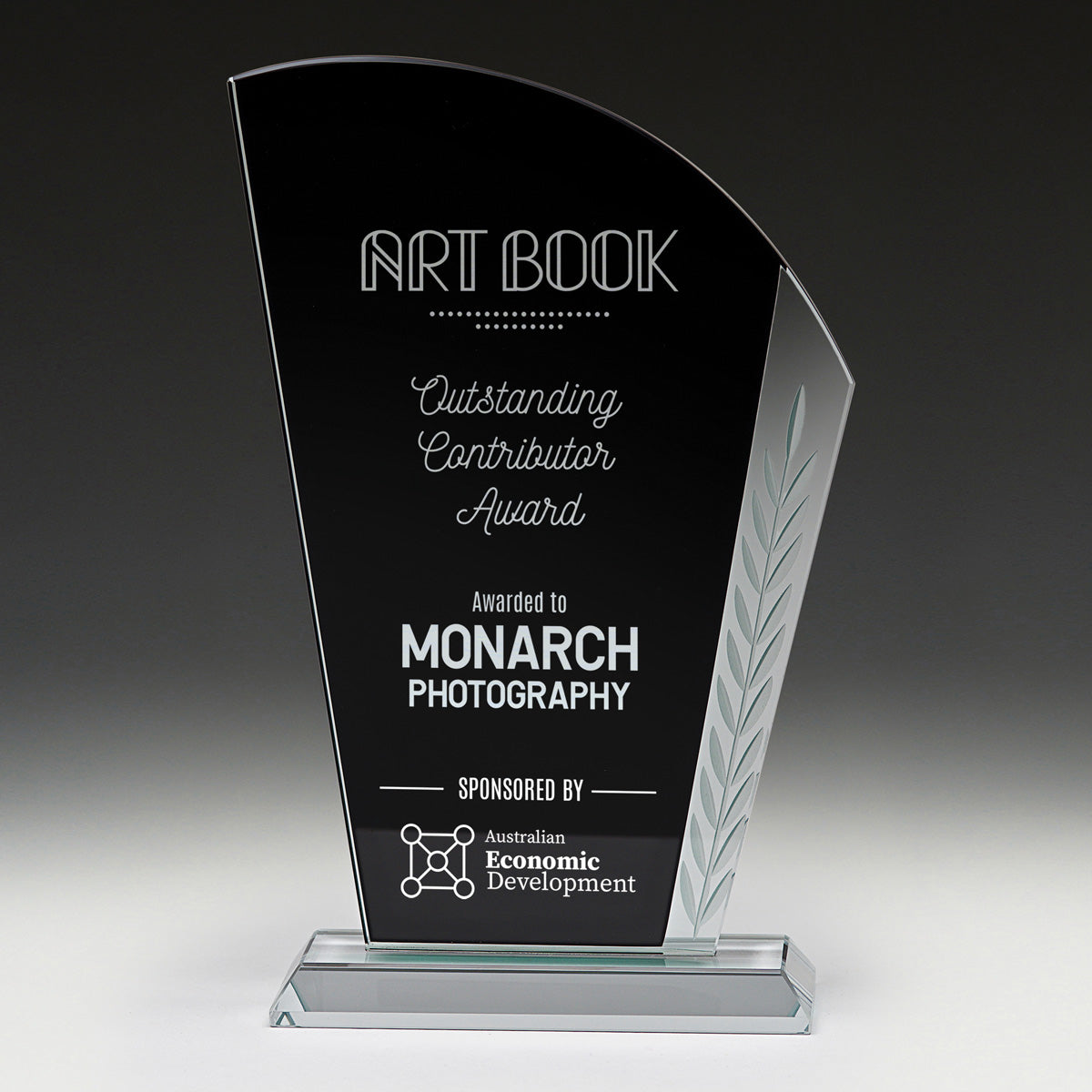 Striking glass awards in the Amarillo series with black coating allowing for precise engraving. Available in multiple sizes and gift boxes for presentation.