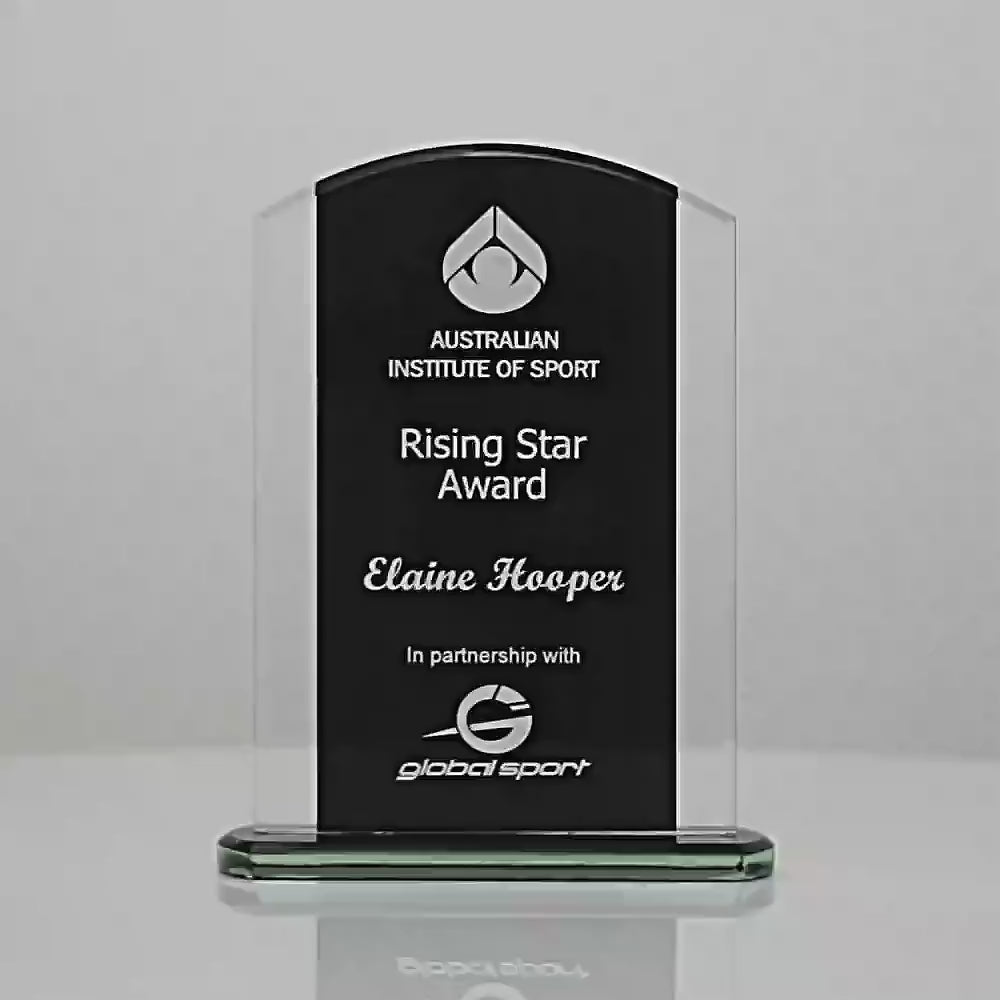 Affordable glass award option features a classic arch design and black panelling to allow for precision engraving. The Florence Glass Award is available in 2 sizes and is supplied in presentation gift box.