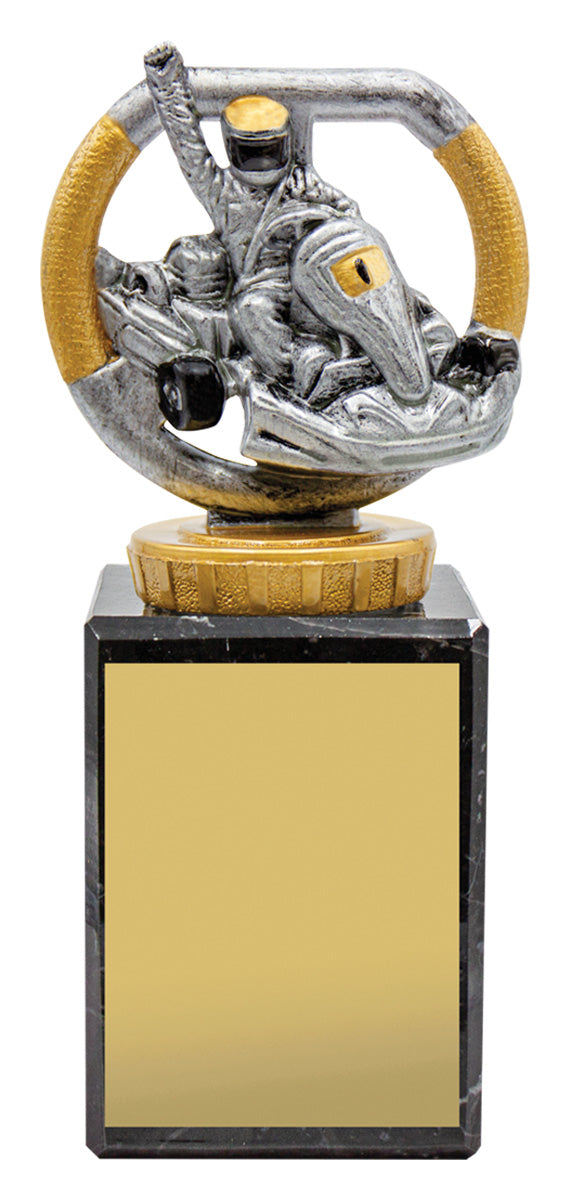 Reliable and affordable trophy choice, the Marble Trophy series features classic European marble and the distinctive Go Kart trophy top. Marble trophies available in 4 sizes and provide extra prestige to your trophy award presentation.