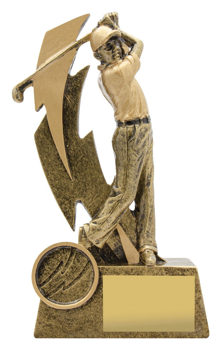 Golf Shazam series showcases the golfer in action with excellent detail and design. Golf trophies completed in classic trophy gold colours and available in 3 sizes. There is the option if required of including your logo.