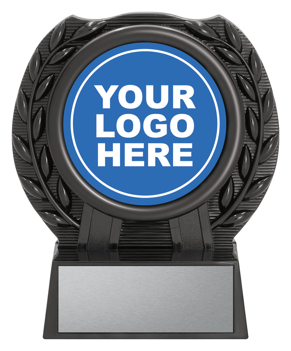Graceful design of holder for 50mm insert - the Acumen trophy is a simple & effective way to showcase your custom logo whilst remaining a value option.