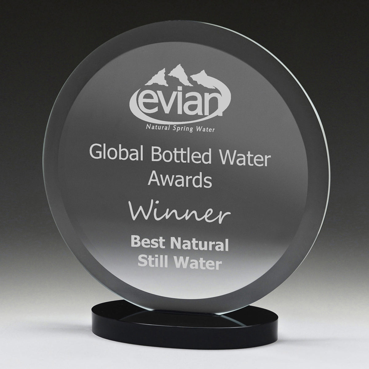 Series of attractive glass awards feature striking frosted edge design and classic black base. At reasonable prices, awards are well suited to range of corporate and business awards.
