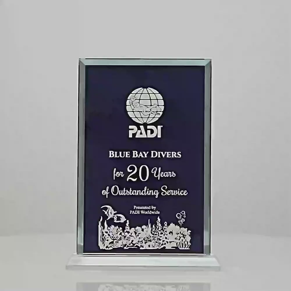 The Glass Blue Billboard award series presents a modern, commanding design and the blue panel element of the award highlights your engraving requirements.